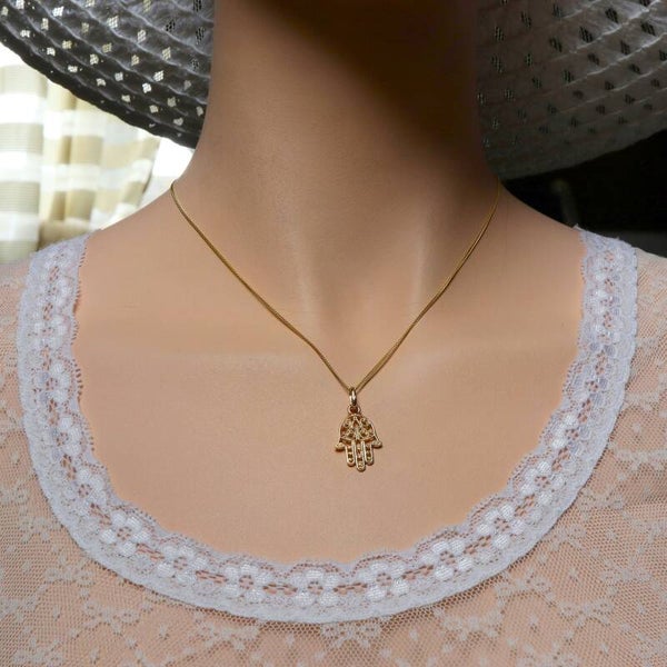 MODELL: Goldanhänger "FATIMAS HAND" mit Öse Ring aus echtem Gold (585/14Karat) für Frauen, Männer und Kinder.